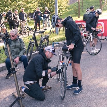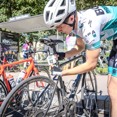 Un mécanicien vélo pour les derniers ajustements techniques avant le grand départ.